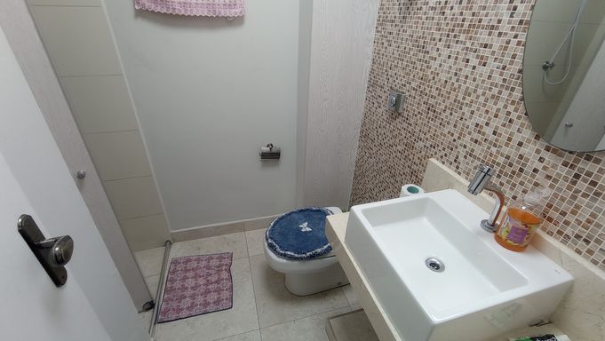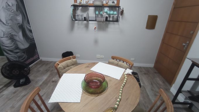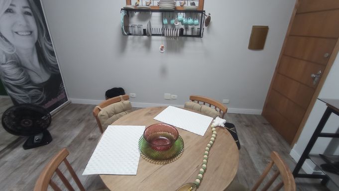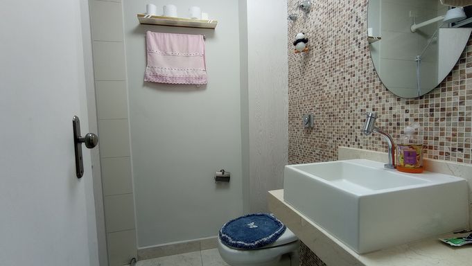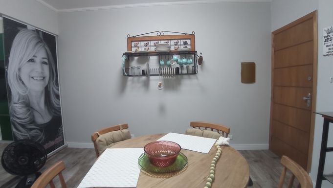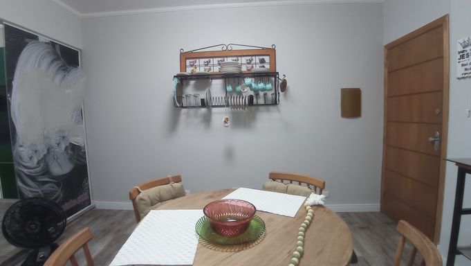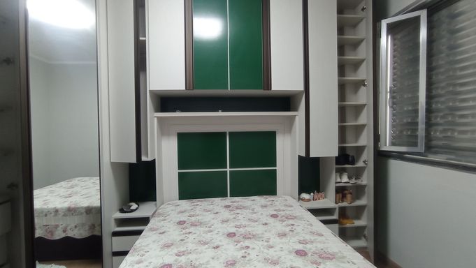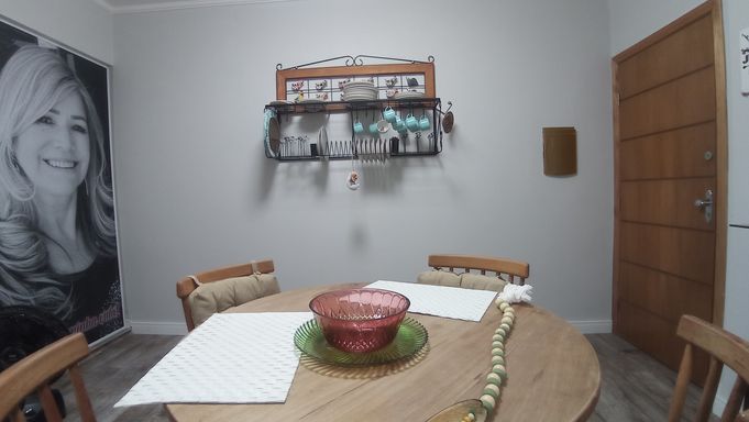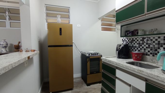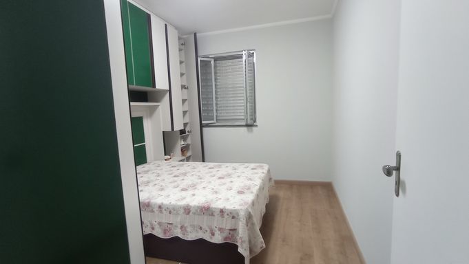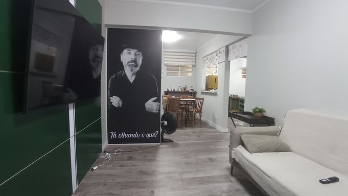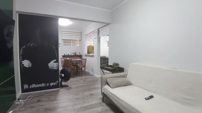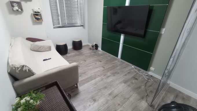 Apartamento de 42 mts, reformado, 01 dormitório, sala de estar e sala de TV, cozinha americana, WC Social e área de serviço.