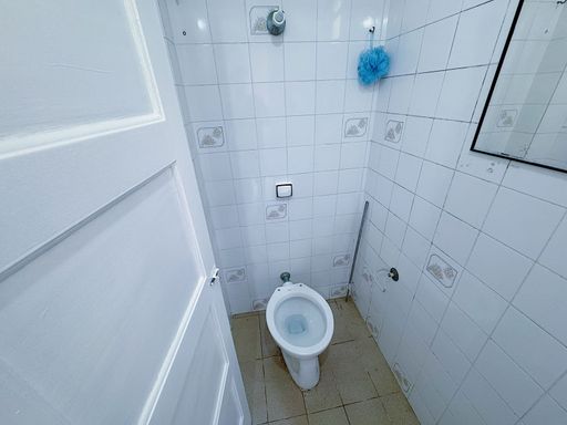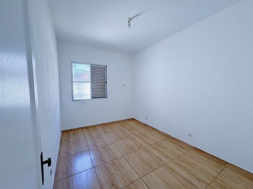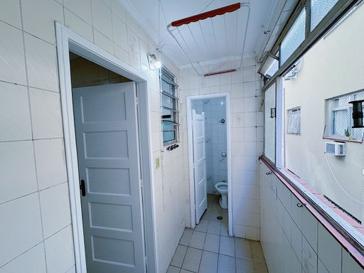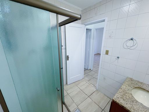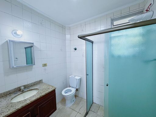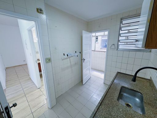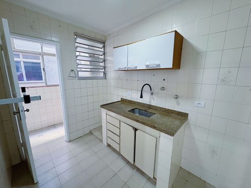 Apartamento de 02 dormitórios, WC social com box, sala, cozinha tradicional e área de serviço com banheiro.