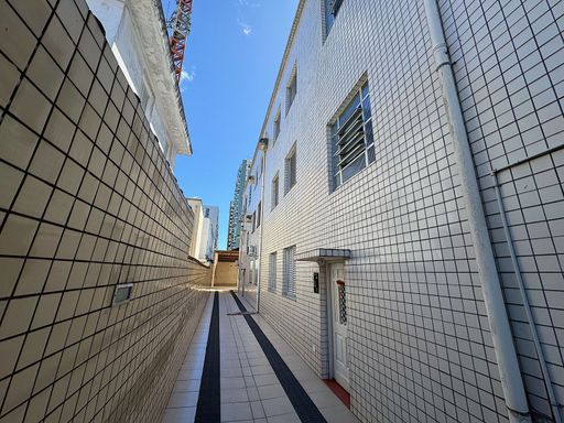 Prédio com escadas, contendo apartamentos térreos e mais 02 andares, garagem coletiva e interfone.