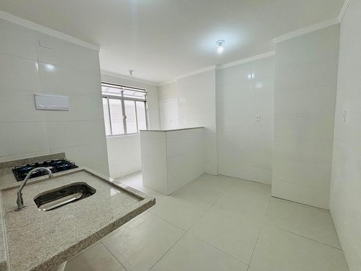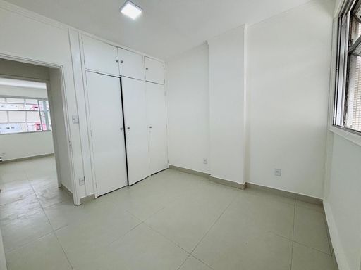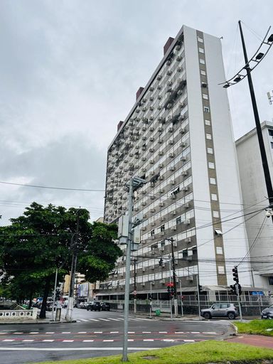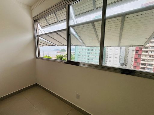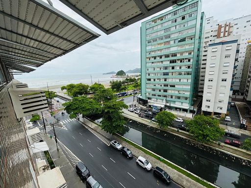 Apartamento de 85m² com 02 dormitórios, sendo 01 suite, reformado, sala com vista lateral para o mar, WC social com box blindex e cozinha com fogão cooktop, integrada a uma funcional área de serviço com tanque.