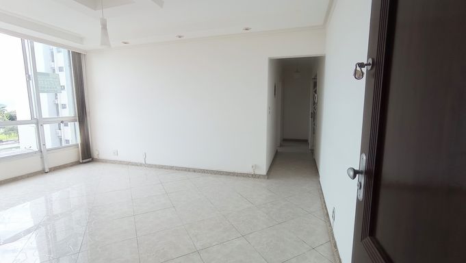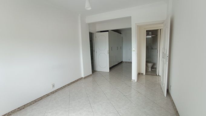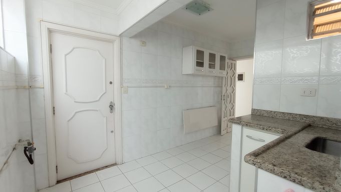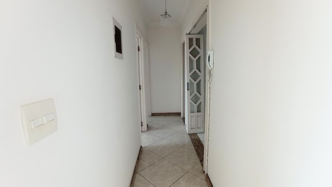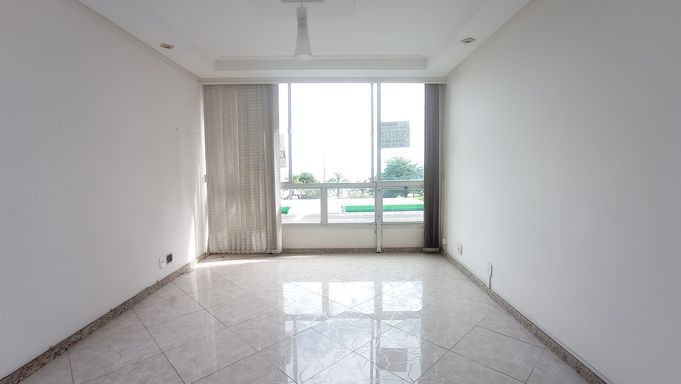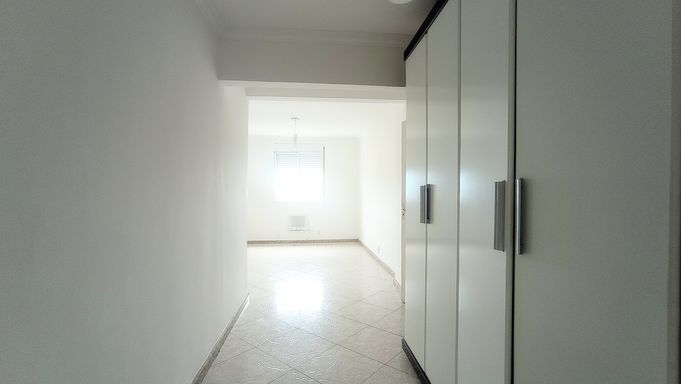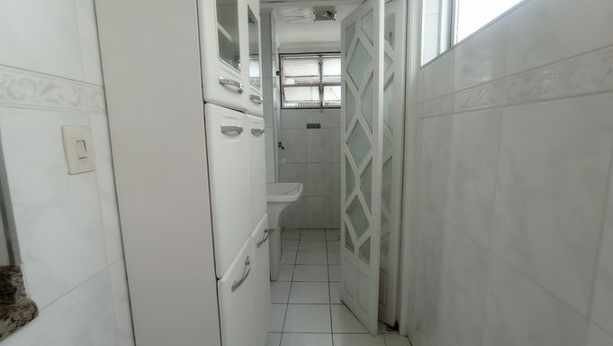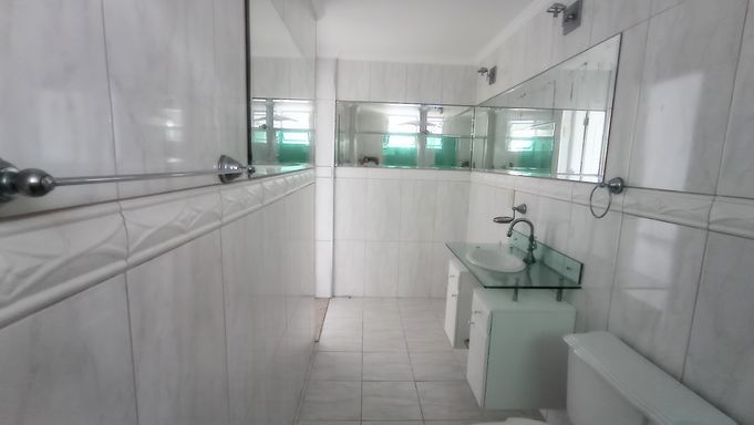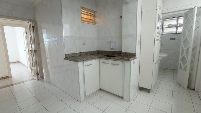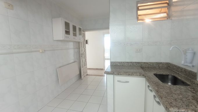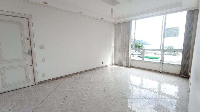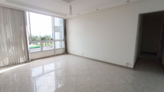 Apartamento de 100m², com duas portas de entrada, sala com vista para o mar, WC social, 03 dormitórios, porém transformado em 02, sendo 01 suíte, podendo reverter ao original, cozinha tradicional com área de serviço e 01 vaga de garagem coletiva.