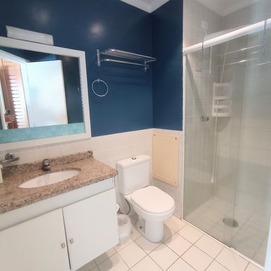 O condomínio oferece manobrista, serviço de arrumadeira, serviço de praia com guarda sol e cadeiras, além da área de lazer com piscina, quadra de tênis, playground, sauna e salão de jogos.