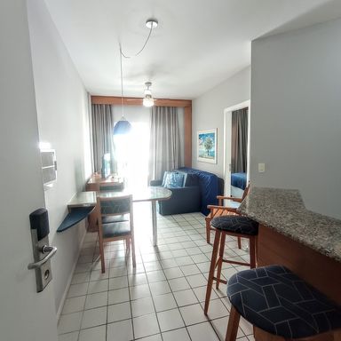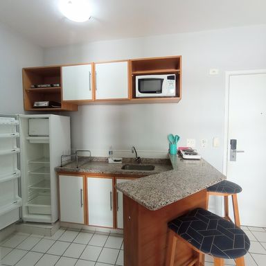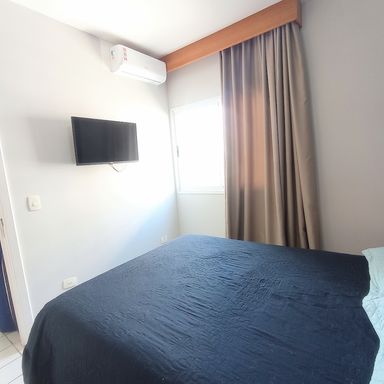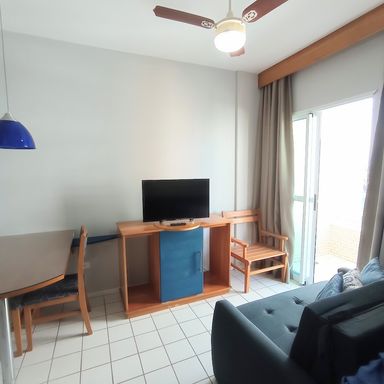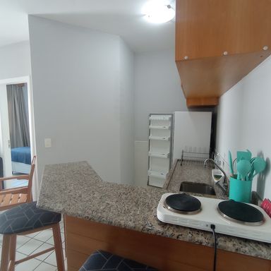 Apartamento mobiliado, sala com varanda, cozinha americana, 01 dormitório(suíte), ar condicionado, totalmente pronto com TV e todos os utensílios necessários para melhor atender você.