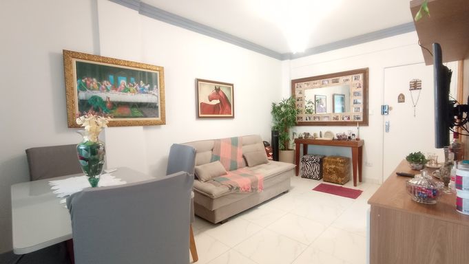 Prédio na quadra da praia, elevadores, portaria 24h, gás encanado, em rua com diversos comércios locais e a 100 mts do Aquário de Santos.
