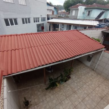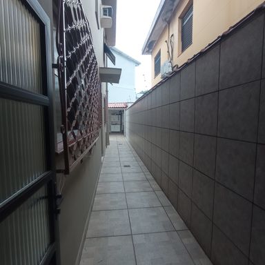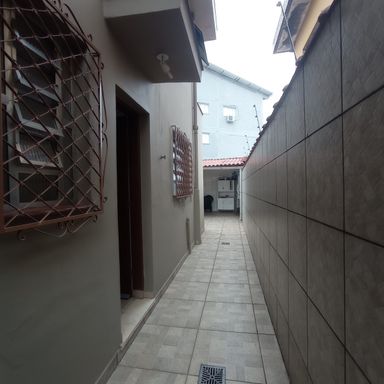 02 vagas cobertas na frente e corredor lateral externo que leva ao quintal.
