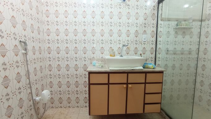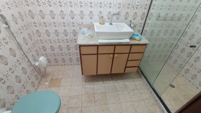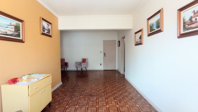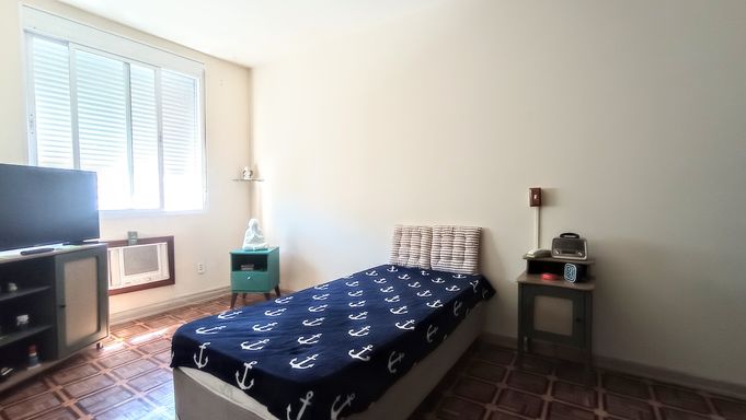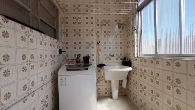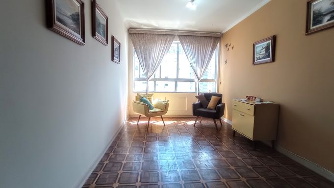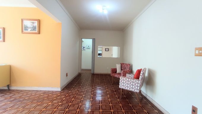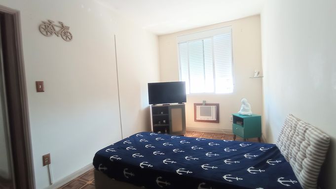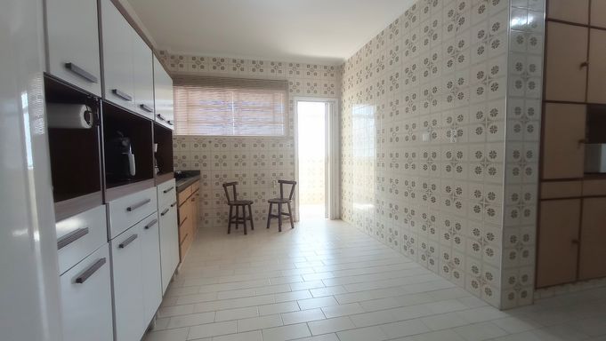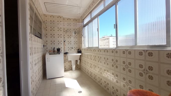 Apartamento amplo de 130m², 02 dormitórios, sendo 01 suíte, sala em L com vista lateral para o mar, WC social, cozinha grande com porta de entrada, área de serviço com vista lateral para o mar, dependência com WC de serviço, super claro e arejado com vista livre.