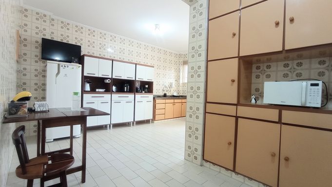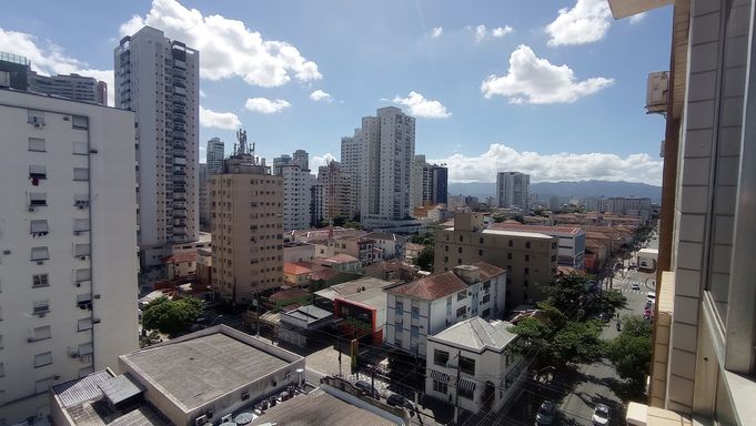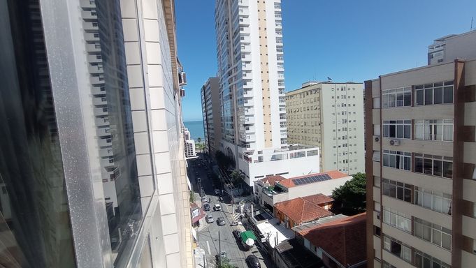 Prédio com 09 andares de esquina na quadra da praia, 03 elevadores, 02 entradas sociais, portaria 24h, salão de festas no mezanino e garagem coletiva suficiente.