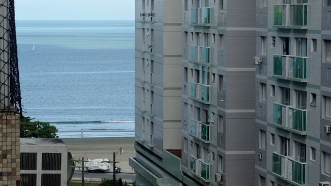 Varanda fechada com vista lateral para o mar, 01 vaga de garagem coletiva insuficiente, vagas para moto e bicicletário, gás encanado, portaria 24h, 03 elevadores, localizado na quadra da praia, com diversos comércios locais, próximo ao Aquário e shopping Praiamar.